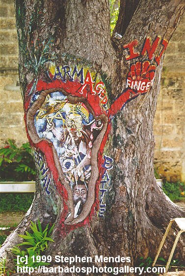 This is painted on a mahogany tree near to St.Georges parish church.