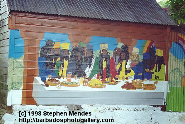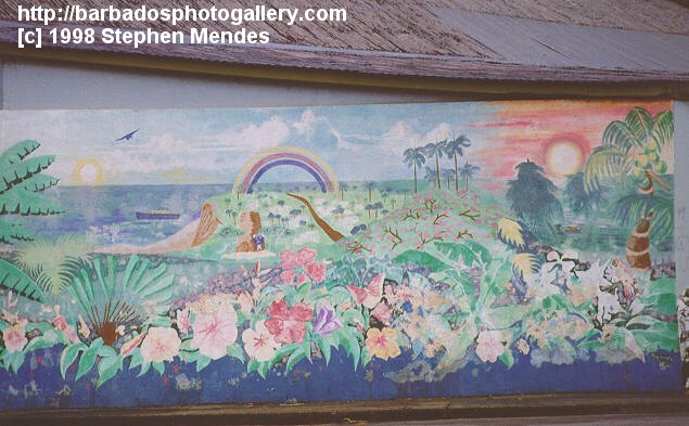 [71K] This masterpiece is painted on the side of a chattel house at Charles Rowe bridge.