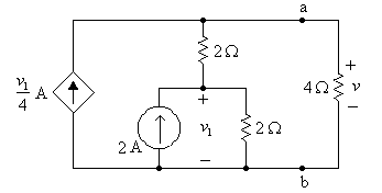 5. Find v by replacing the network to the left of terminals a-b with it's Thevenin equivalent circuit