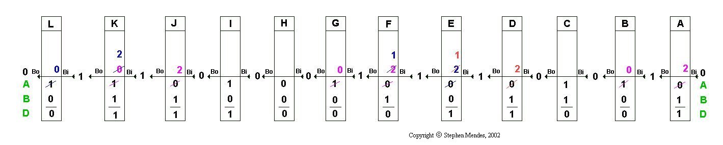 The subtractors are labelled A thru L in the diagram HERE