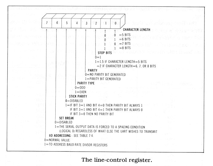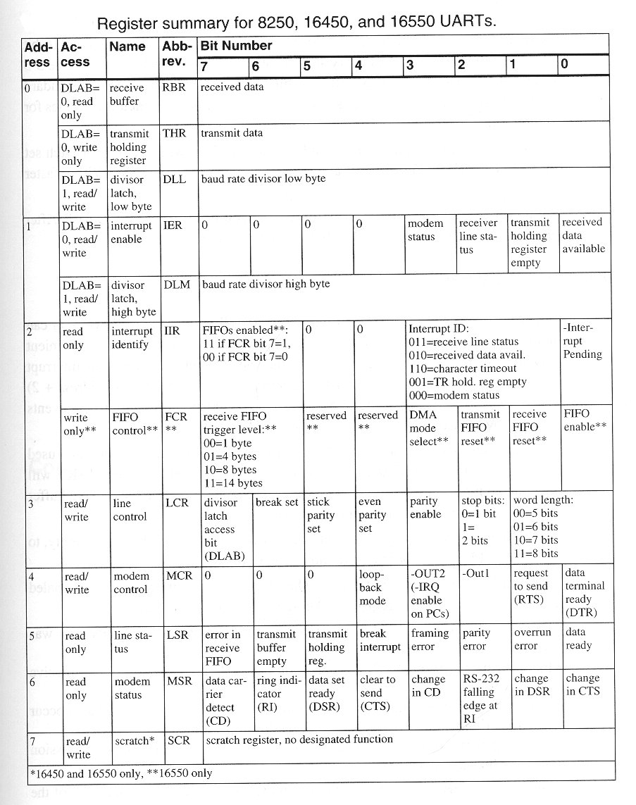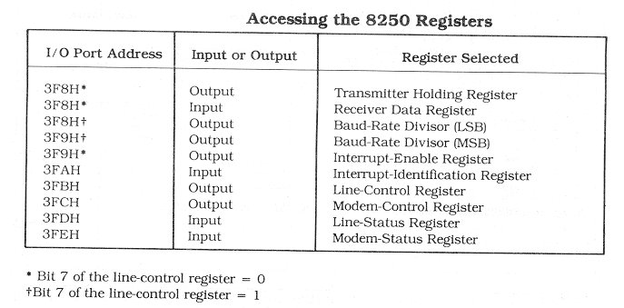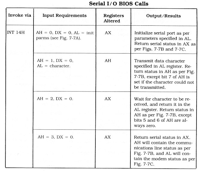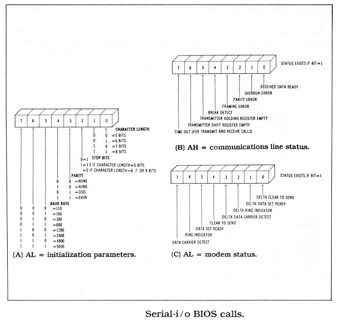 the LINE STATUS, MODEM STATUS layout & REGISTER SETUP for BIOS CALLS