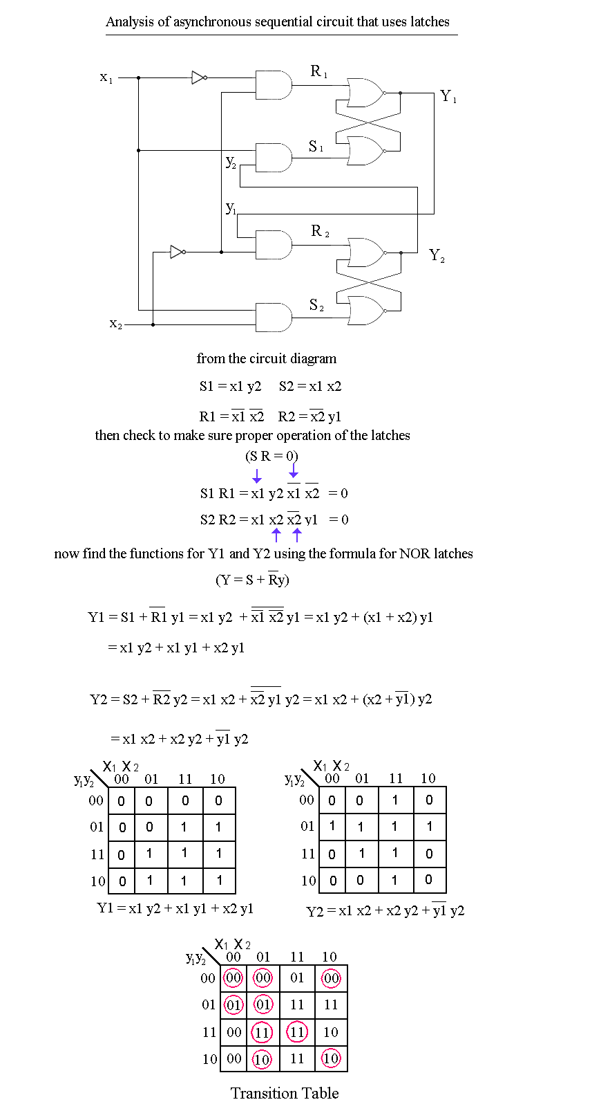 Analysizing Asynchronous FSM - Transition Table