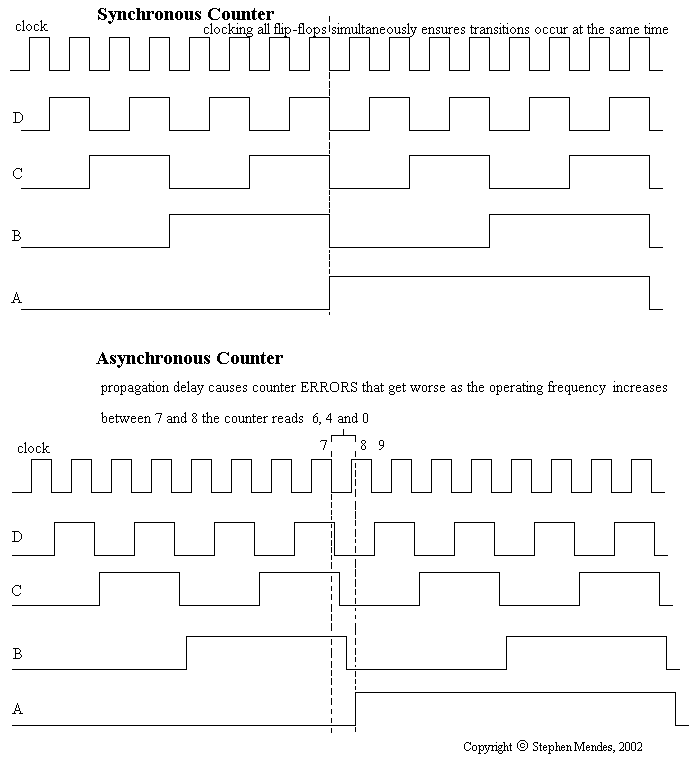 Waveforms for synchronous/asynchronous counters